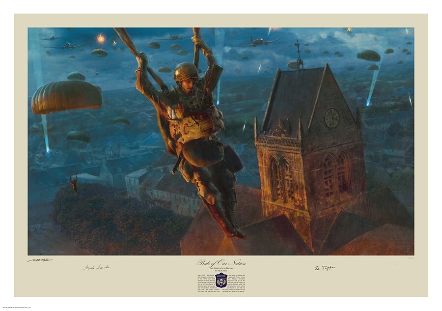 Easy Company jumps into Sainte Mere Eglise art autographed by D-Day heroes