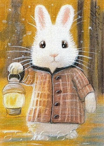 ACEO print limited edition rabbit with lantern, hare, bunny by Anna Hoff