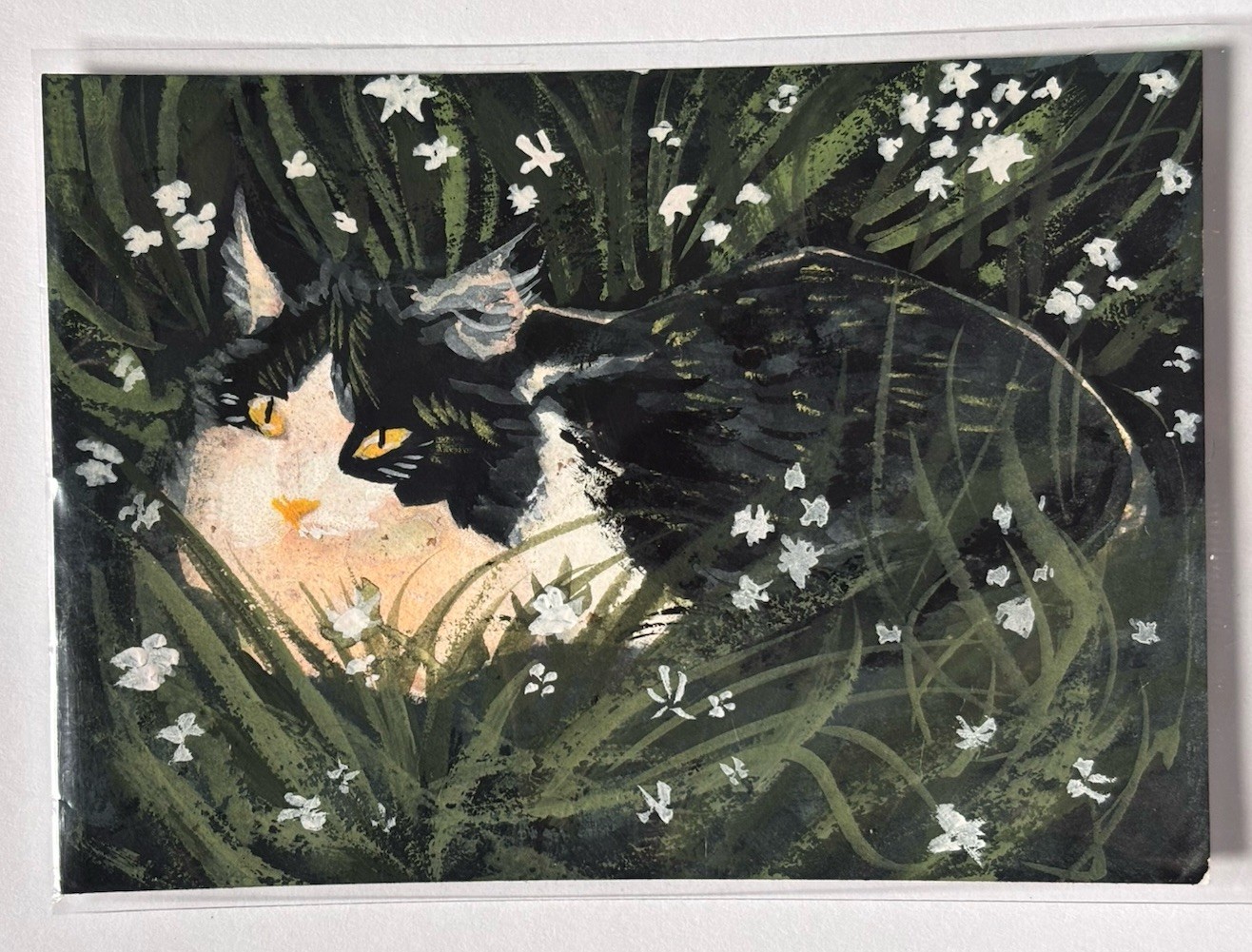 ACEO Print of Painting Cat In Gouache Original Art 2.5x3.5 By Lizz