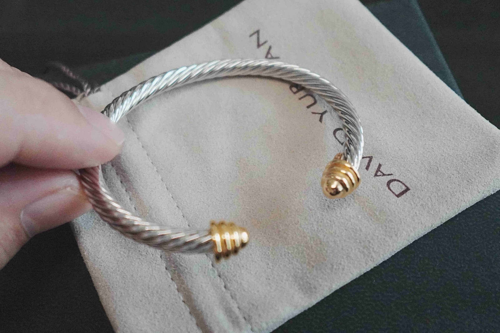 Gift/DavidYurmanSilver4mm*Sterling/green Topaz & 18K Gold Cable ClassicBraceIet