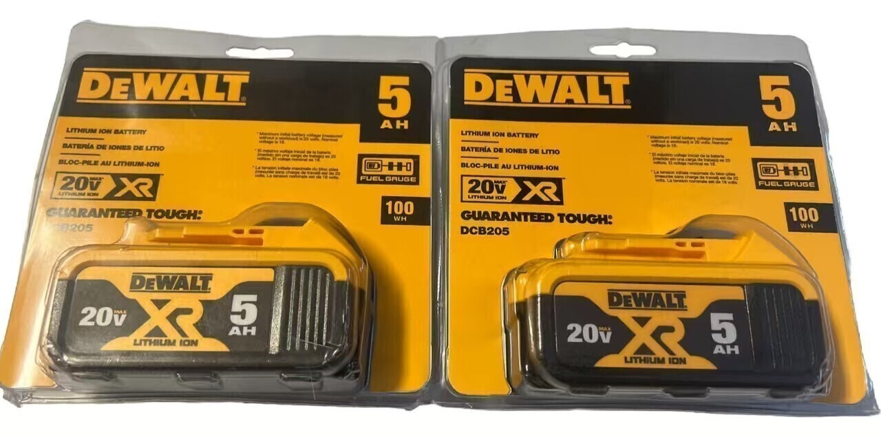 2 Packs New DEWALT DCB205 20V Max XR 5.0Ah Lithium-Ion Battery for Tools US